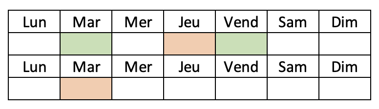 En orange : Les prévisions GLOENS sont réalisées le jeudi et mises à disposition sur le site MaHeWa le mardi suivant.