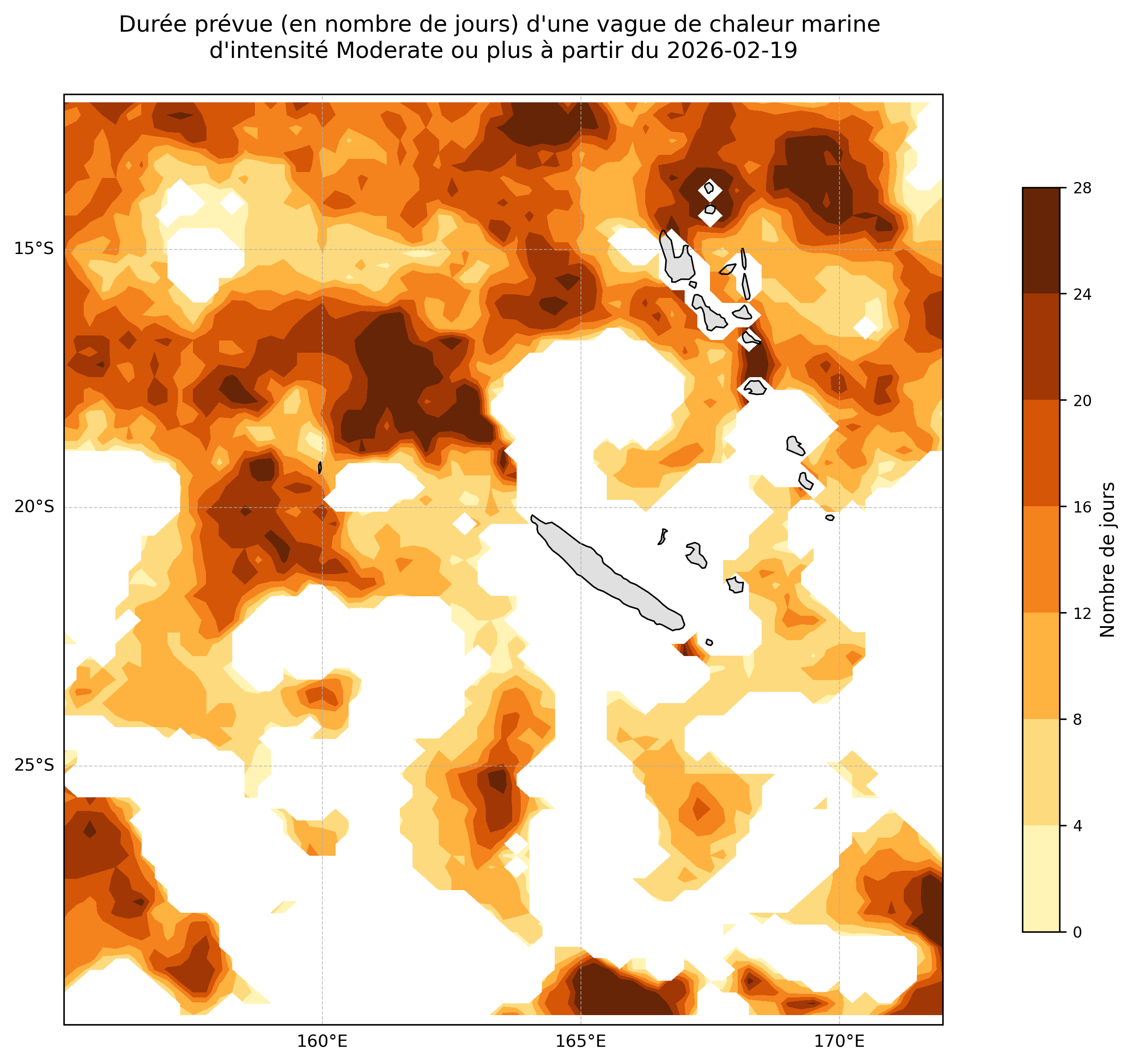 Durée potentielle d’une vague de chaleur à partir du 2026-02-19