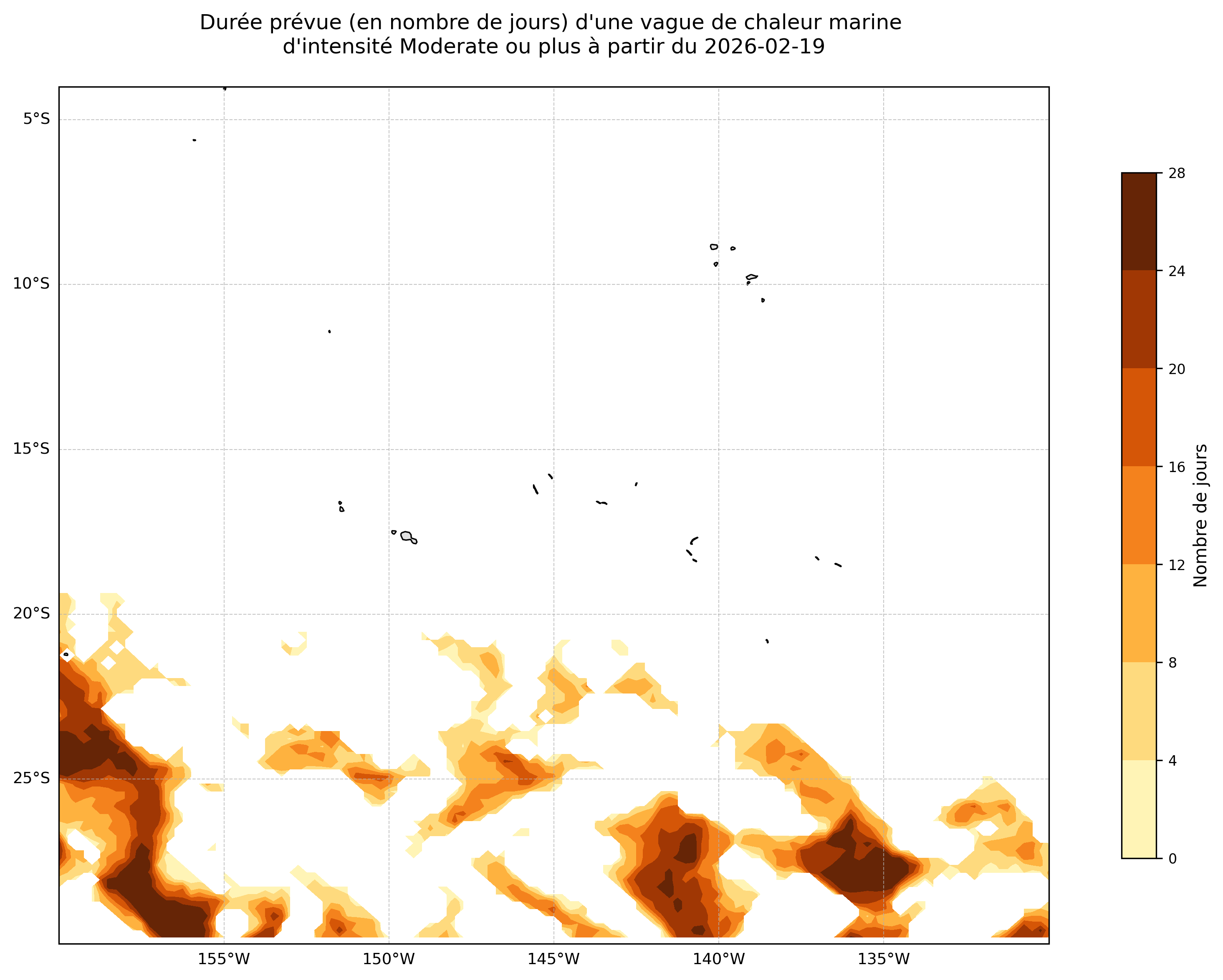 Durée potentielle d’une vague de chaleur à partir du 2026-02-19
