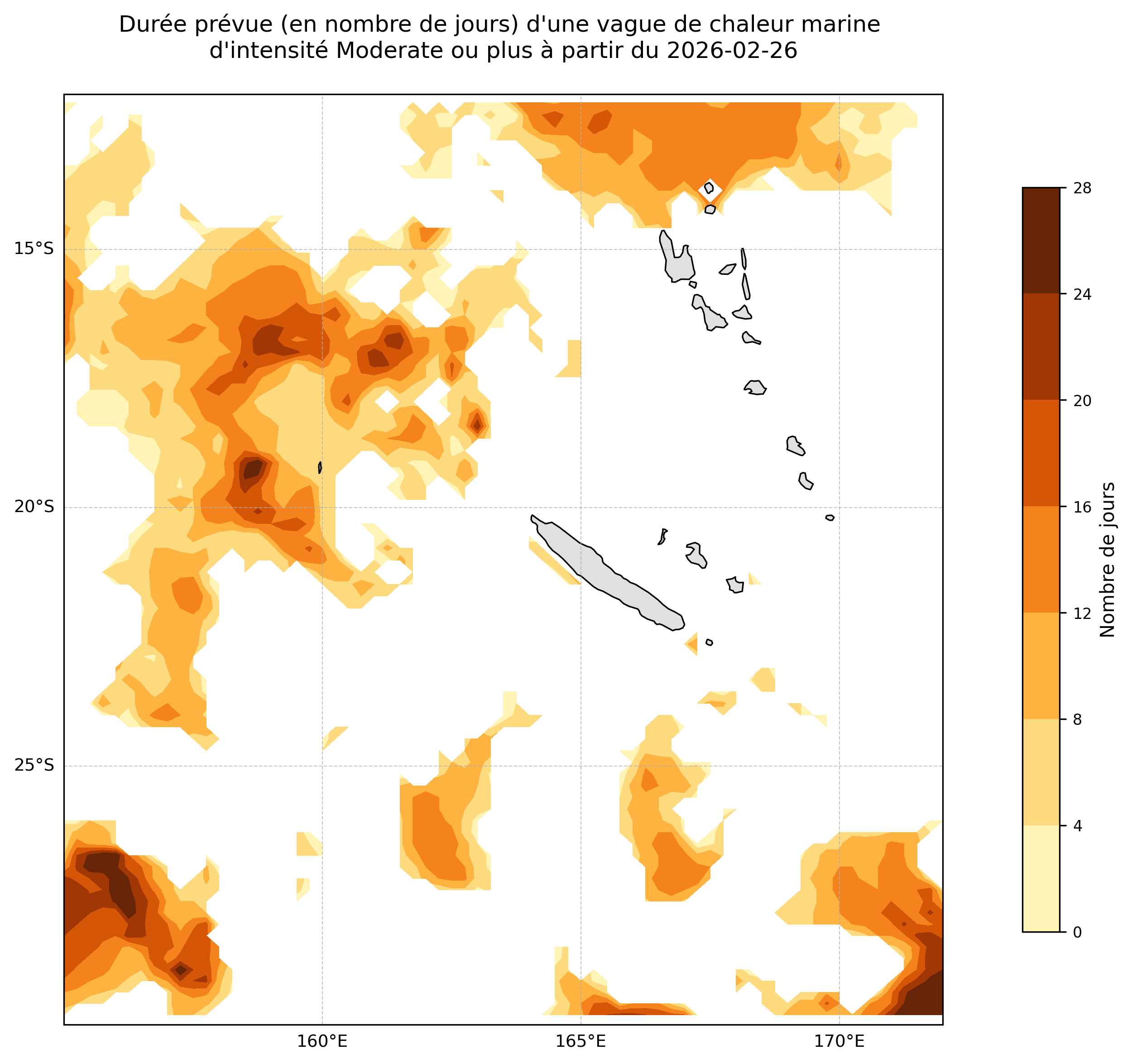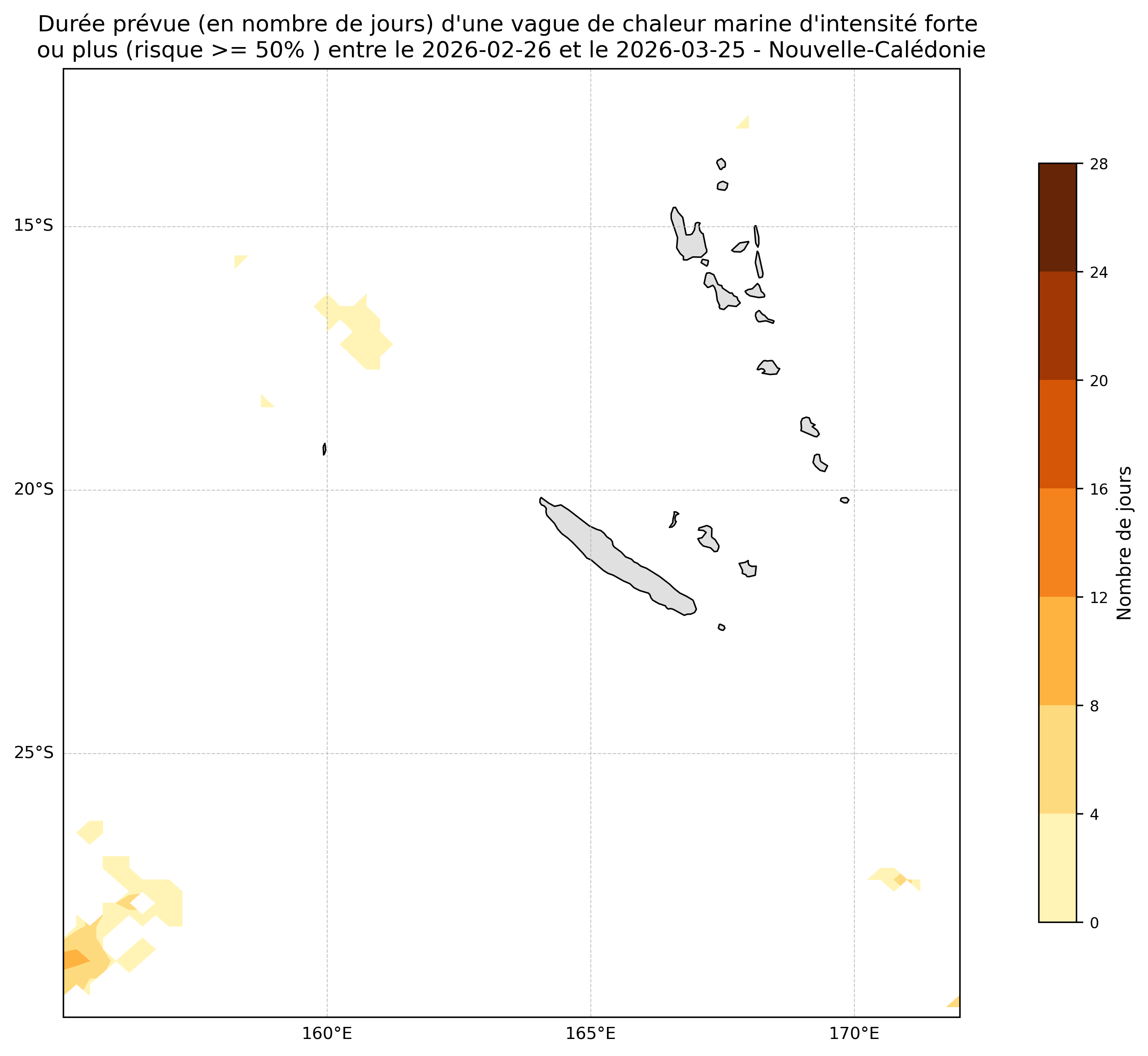 Durée potentielle d’une vague de chaleur à partir du 2026-02-26