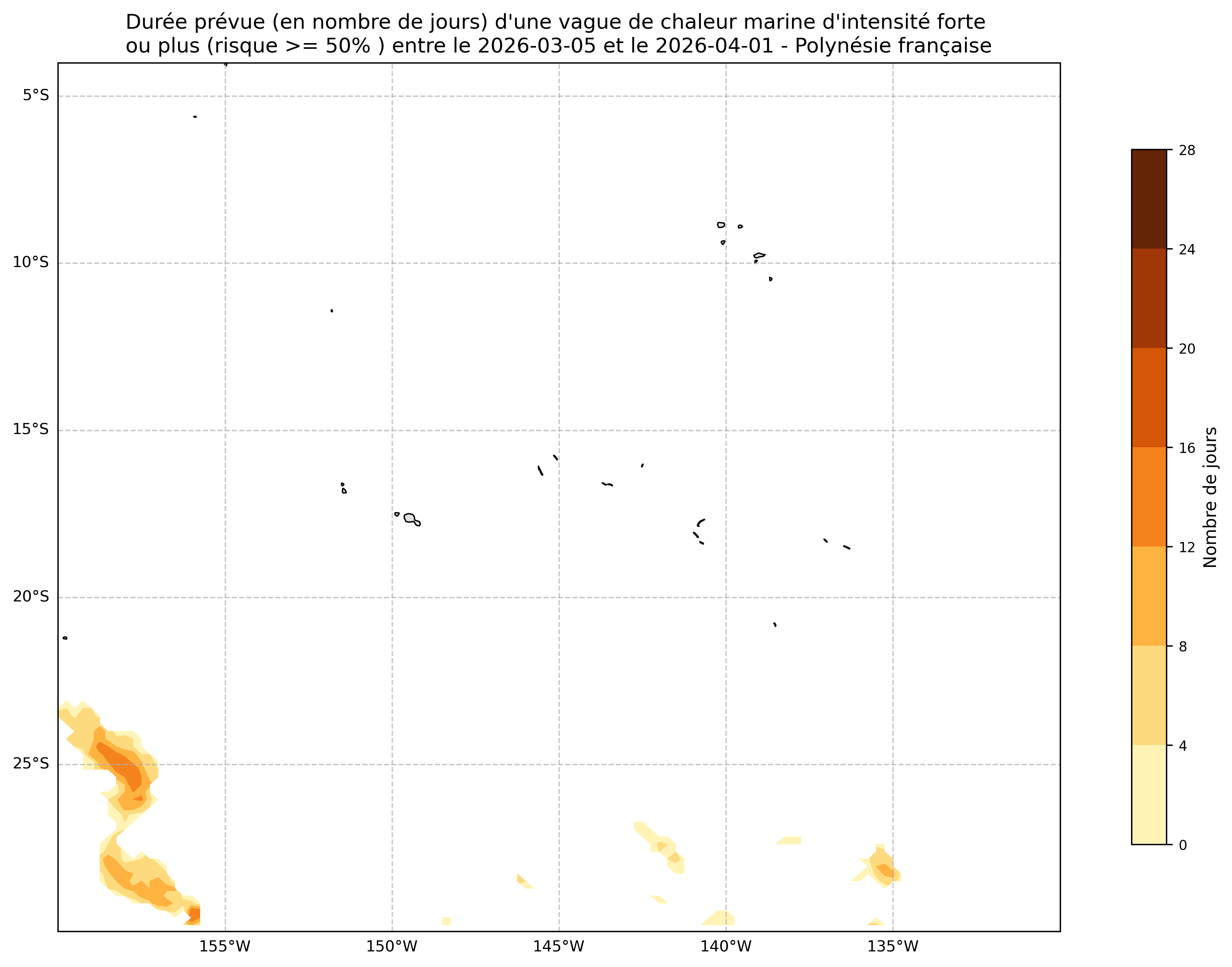 Durée potentielle d’une vague de chaleur à partir du 2026-03-05