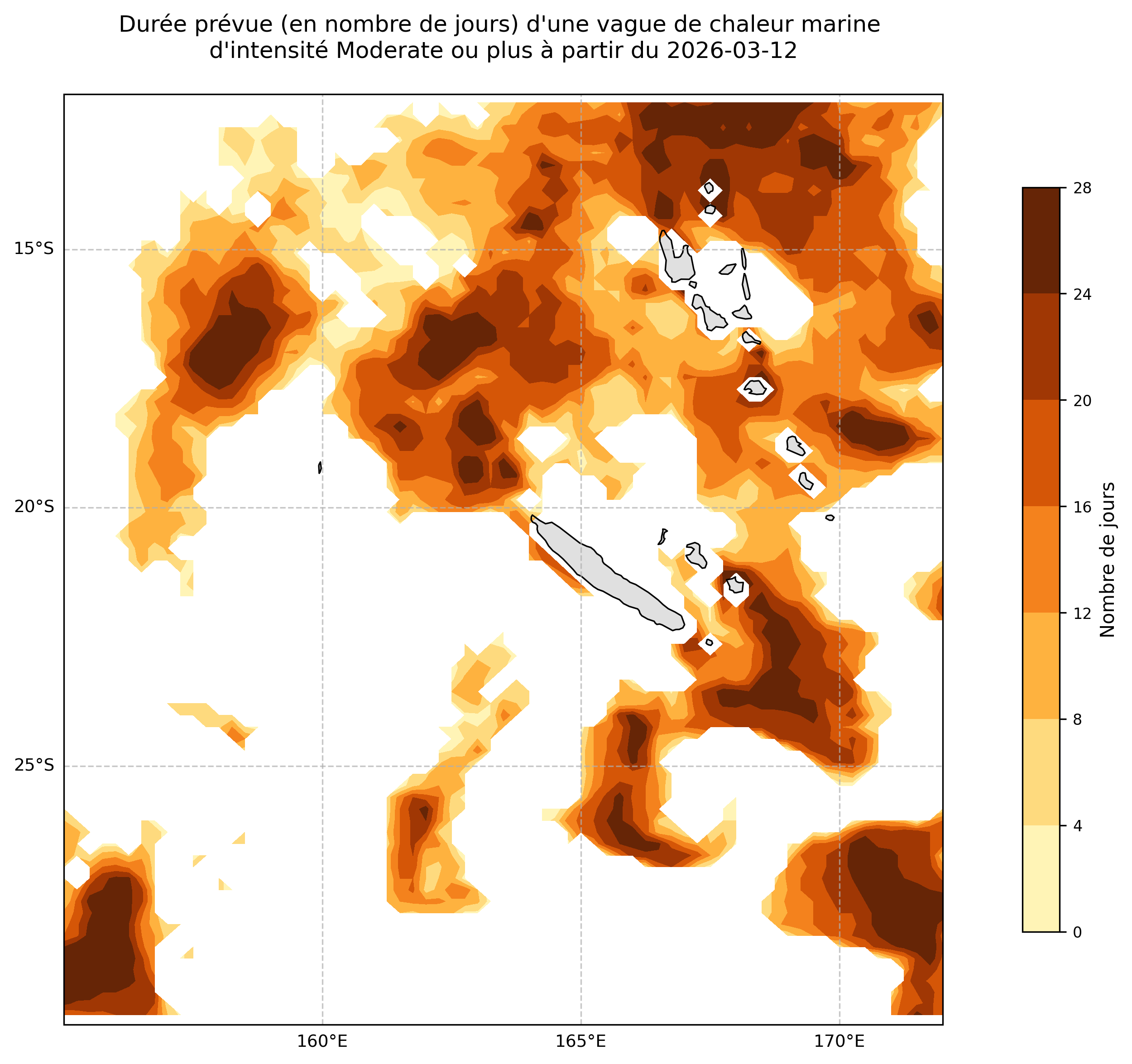 Durée potentielle d’une vague de chaleur à partir du 2026-03-12