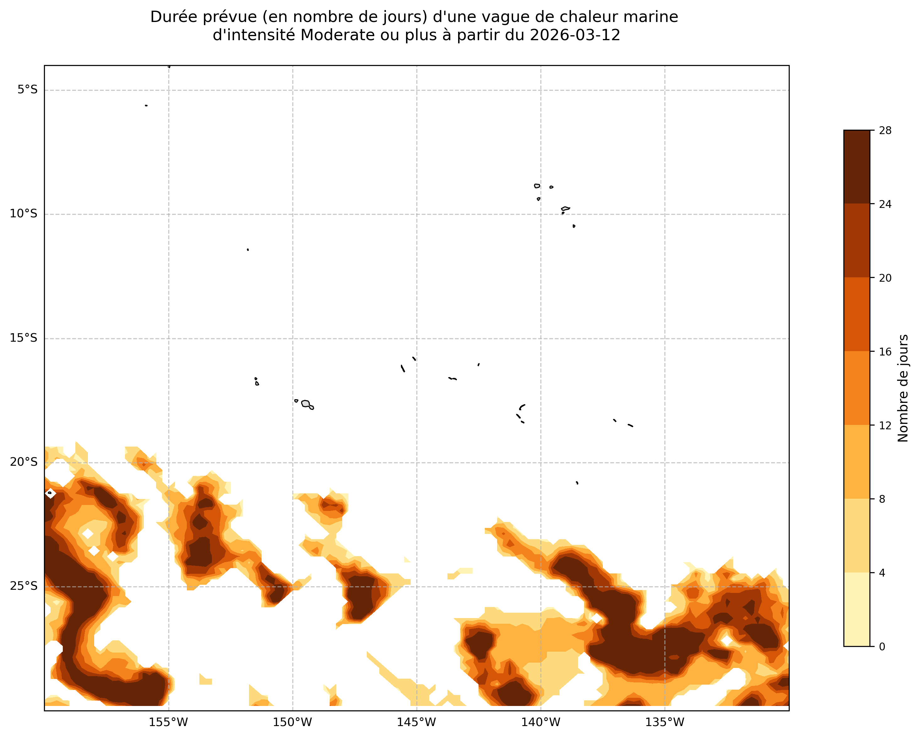 Durée potentielle d’une vague de chaleur à partir du 2026-03-12